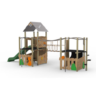 Échappée belle au coeur de la campagne !Avec la gamme campagne, l'aire de jeux devient un coin de nature authentique. On grimpe, on explore, on rit au rythme de la vie à la campagne. Des teintes douces pour une escapade bucolique à partager entre enfants.